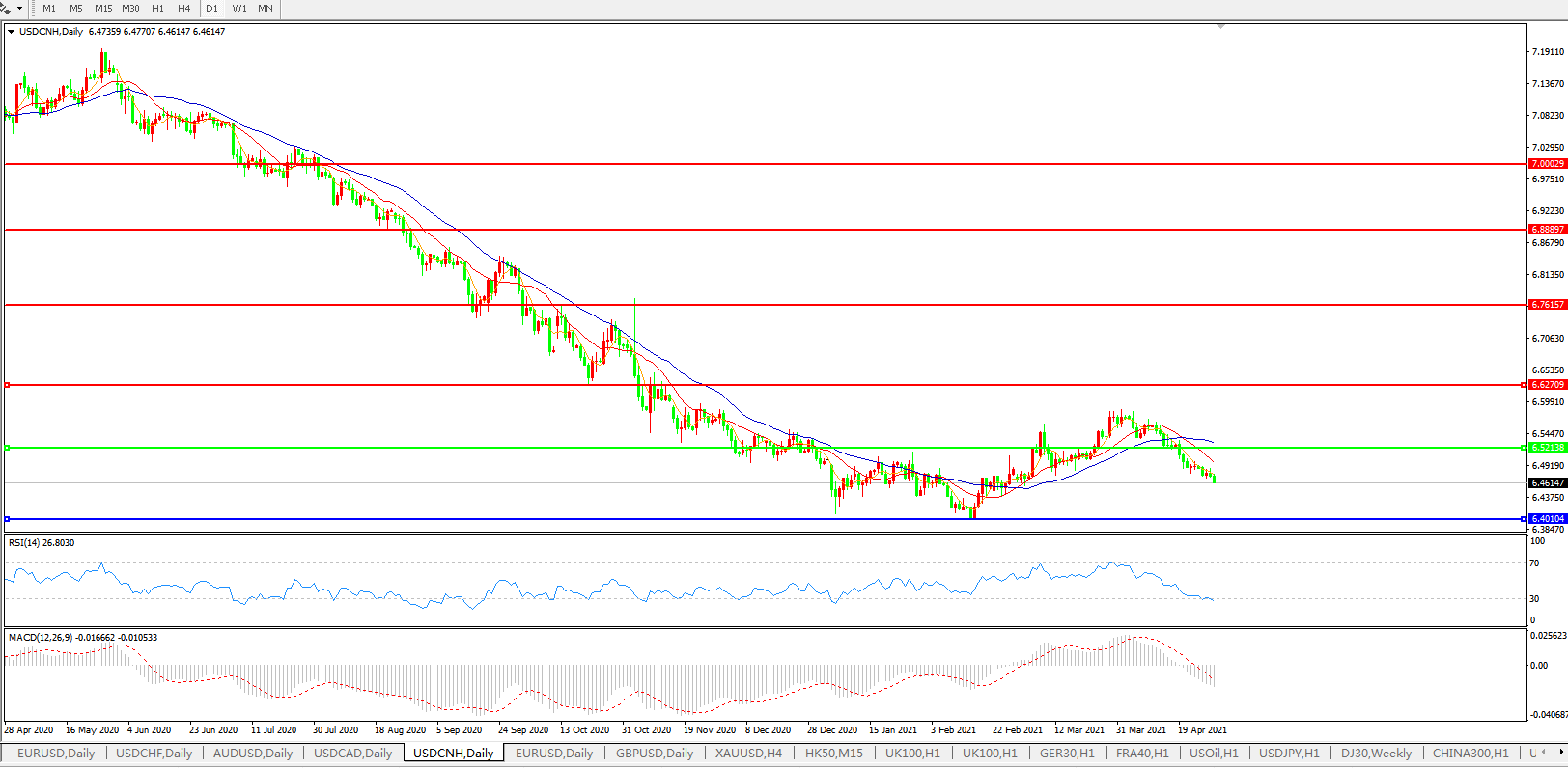 美元兑人民币USDCNH    日线图: