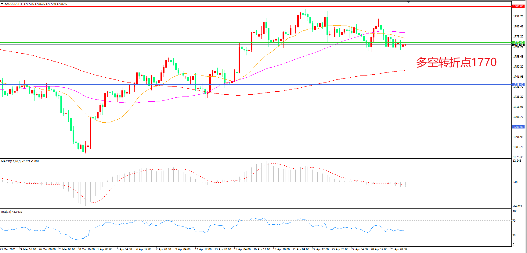 多空转折点:1770.00