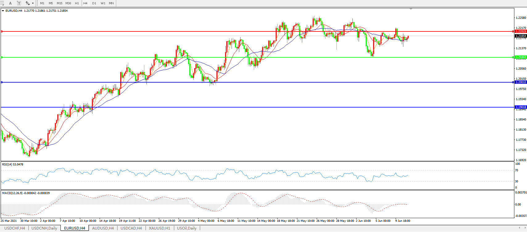 欧元兑美元EURUSD 4小时图: