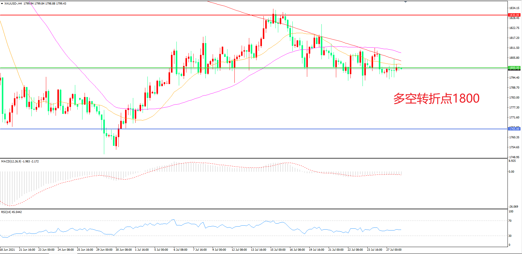 多空转折点:1800.00