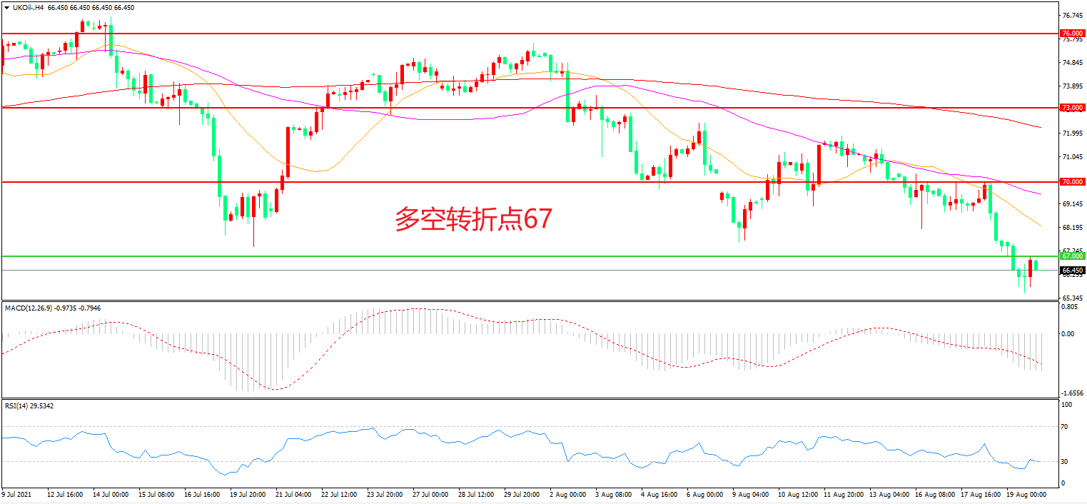 备选策略:在67.00之上看涨,目标70.00               73.00