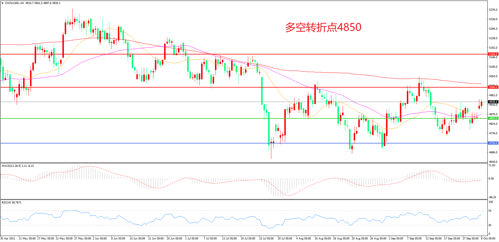 多空转折点:4850.00