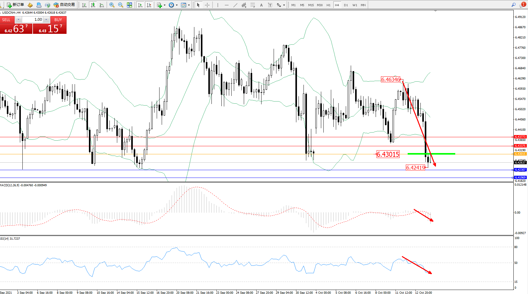 交易策略:6.43015下方看跌,目标6.43307、6.41969