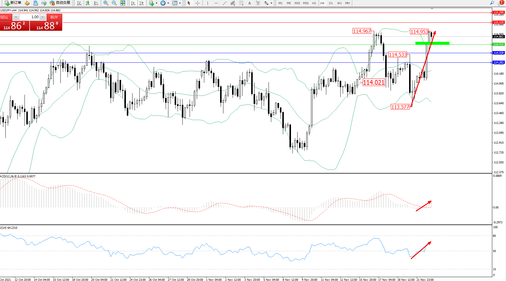 支撑位:114.558、114.383