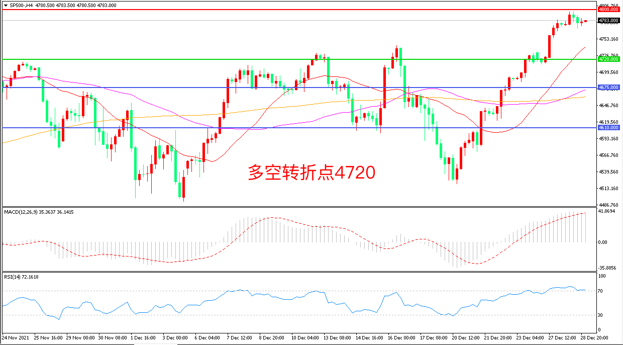 交易策略:在4720.00之上看涨,目标4800.00 4880.00