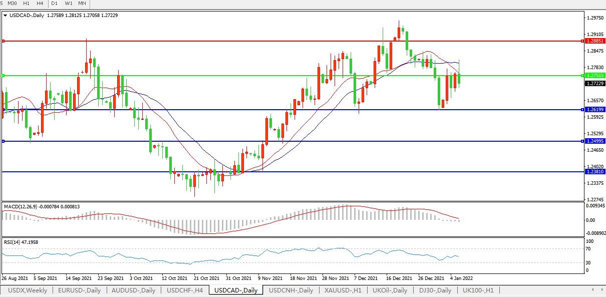 交易策略:在1.2750之下,看跌,目标价位为1.2620、1.2500