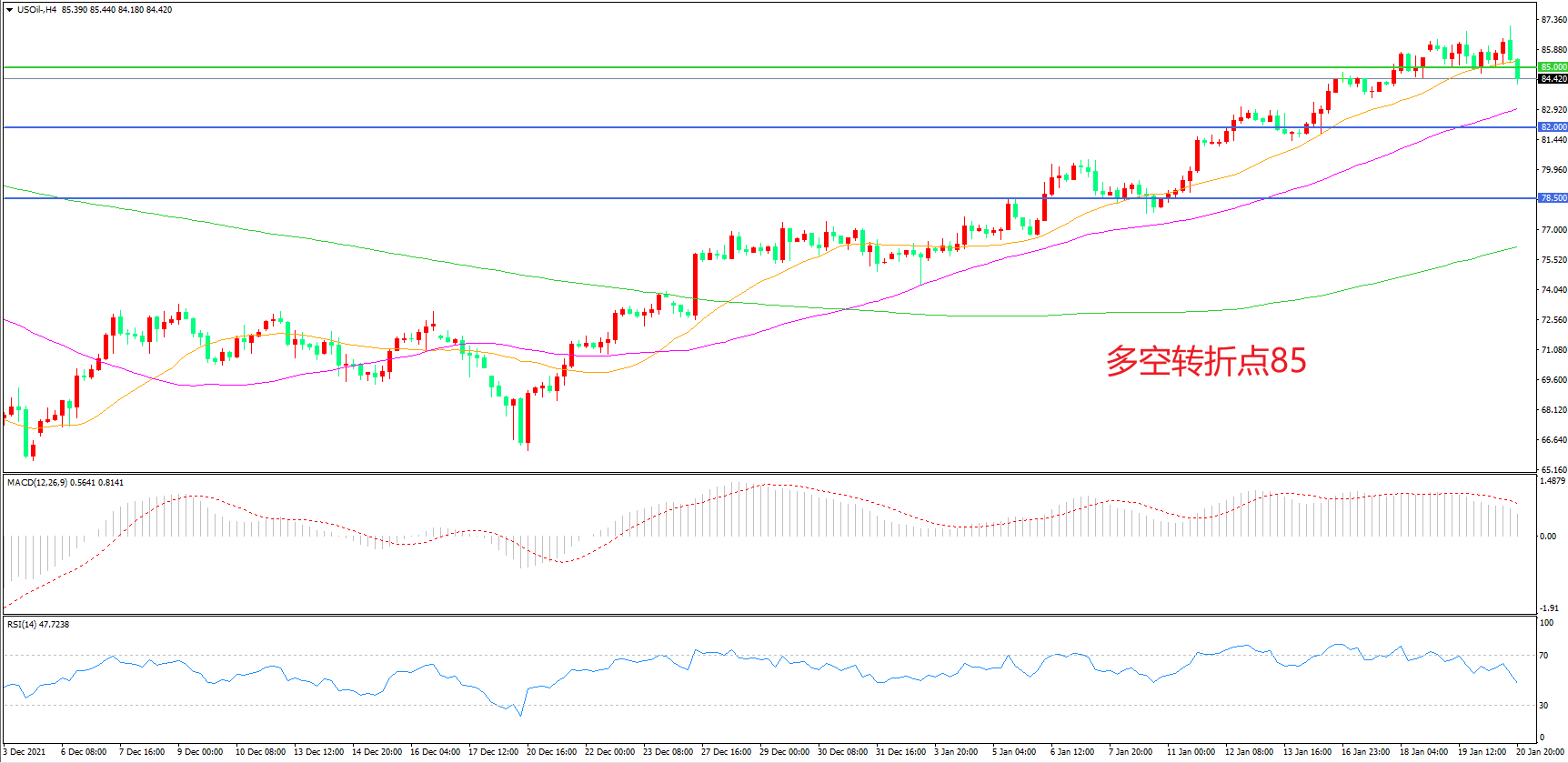 多空转折点:85.00
