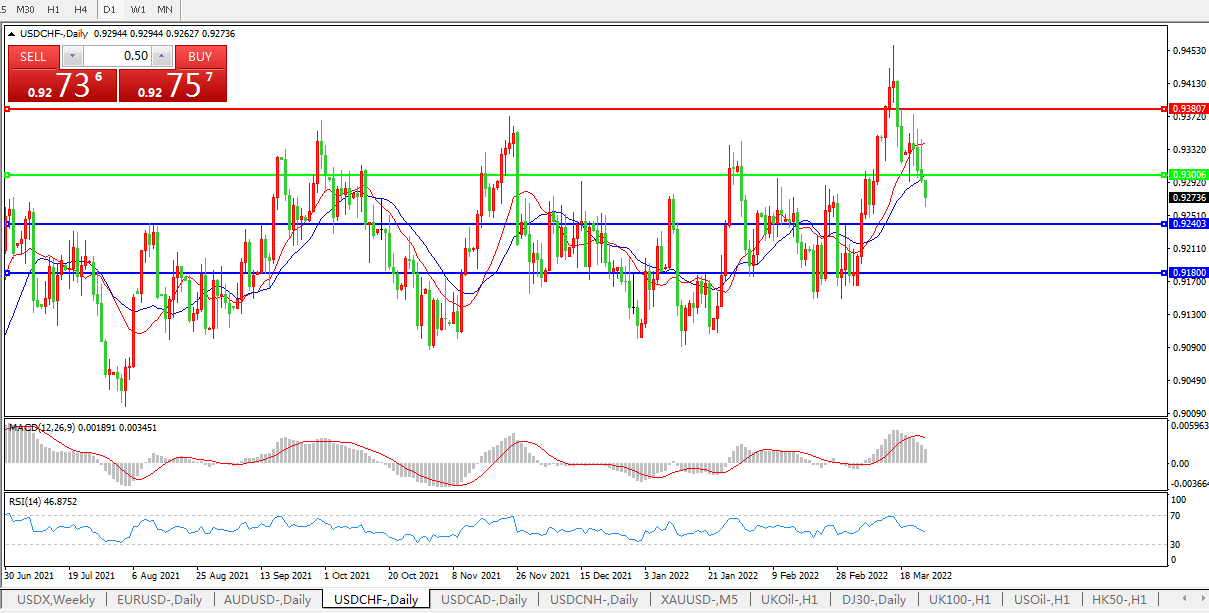 交易策略:0.9300下方看跌,目标0.9240、0.9180