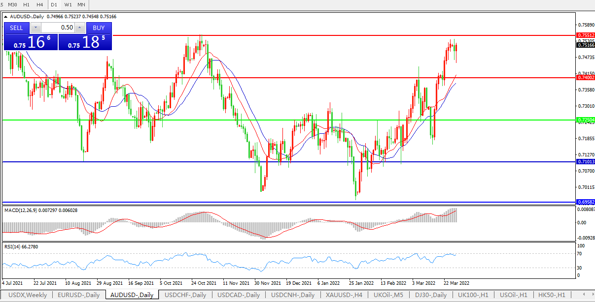 压制位:0.7400    0.7550