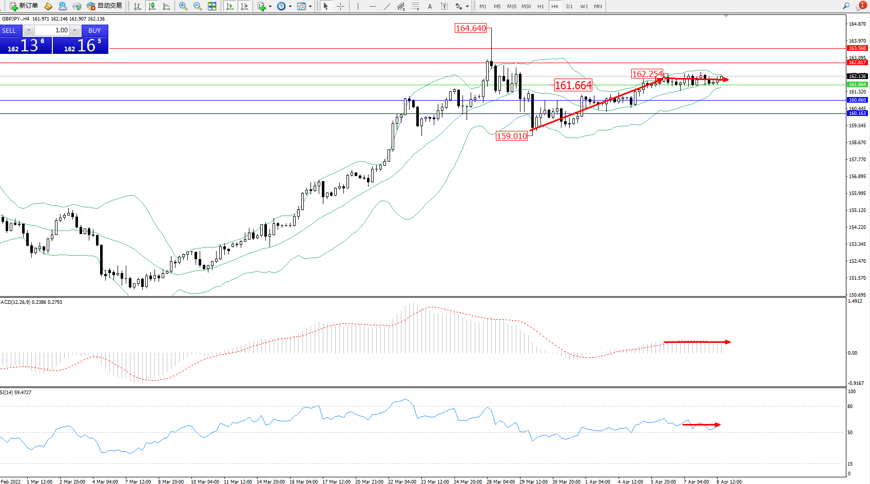 交易策略:161.664上方看涨,目标162.817、163.568