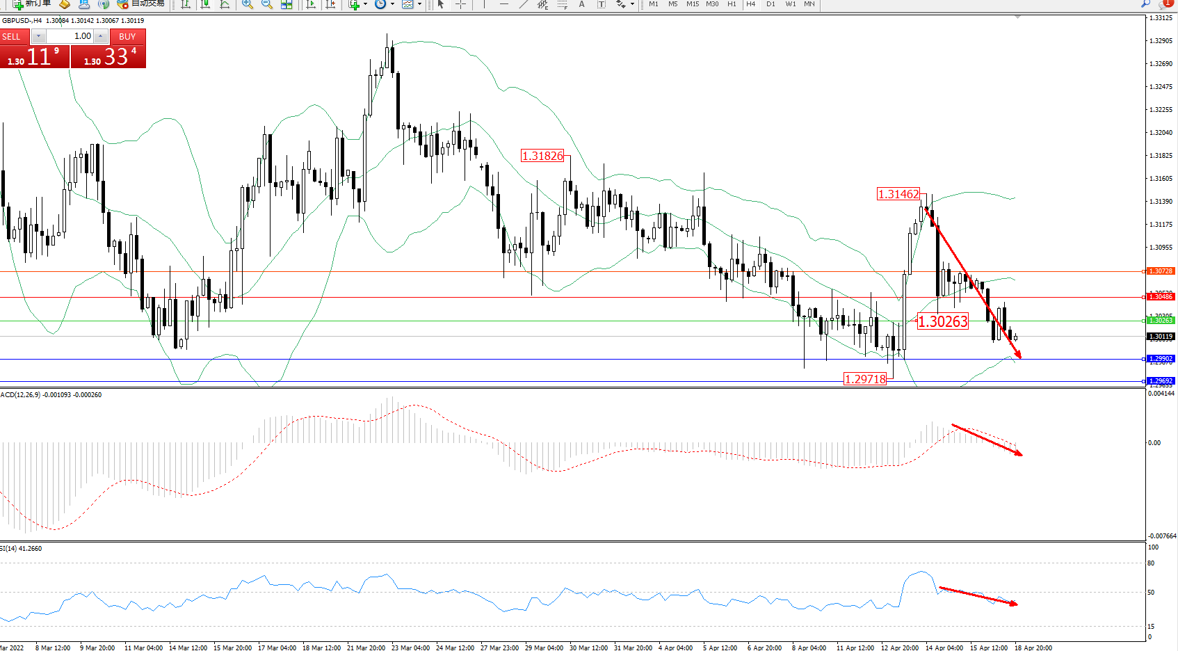 交易策略:1.30263下方看跌,目标1.299021.29692