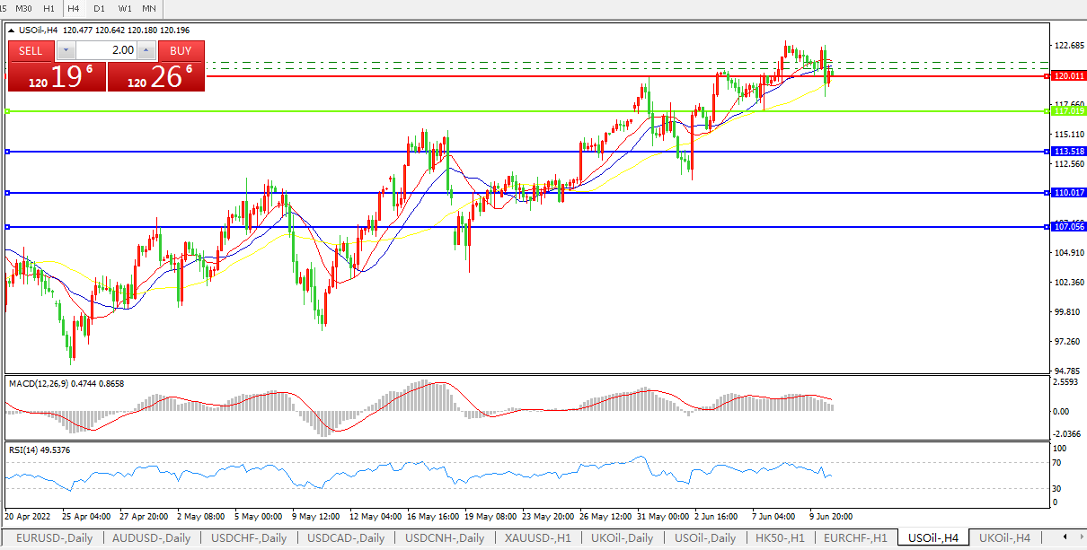 美油涨上120美元关口,市场认为欧佩克的增产计划不会立即改善全球供应紧张局面,而且随着抗疫封锁措施的放松,原油市场需求还会更加紧张。