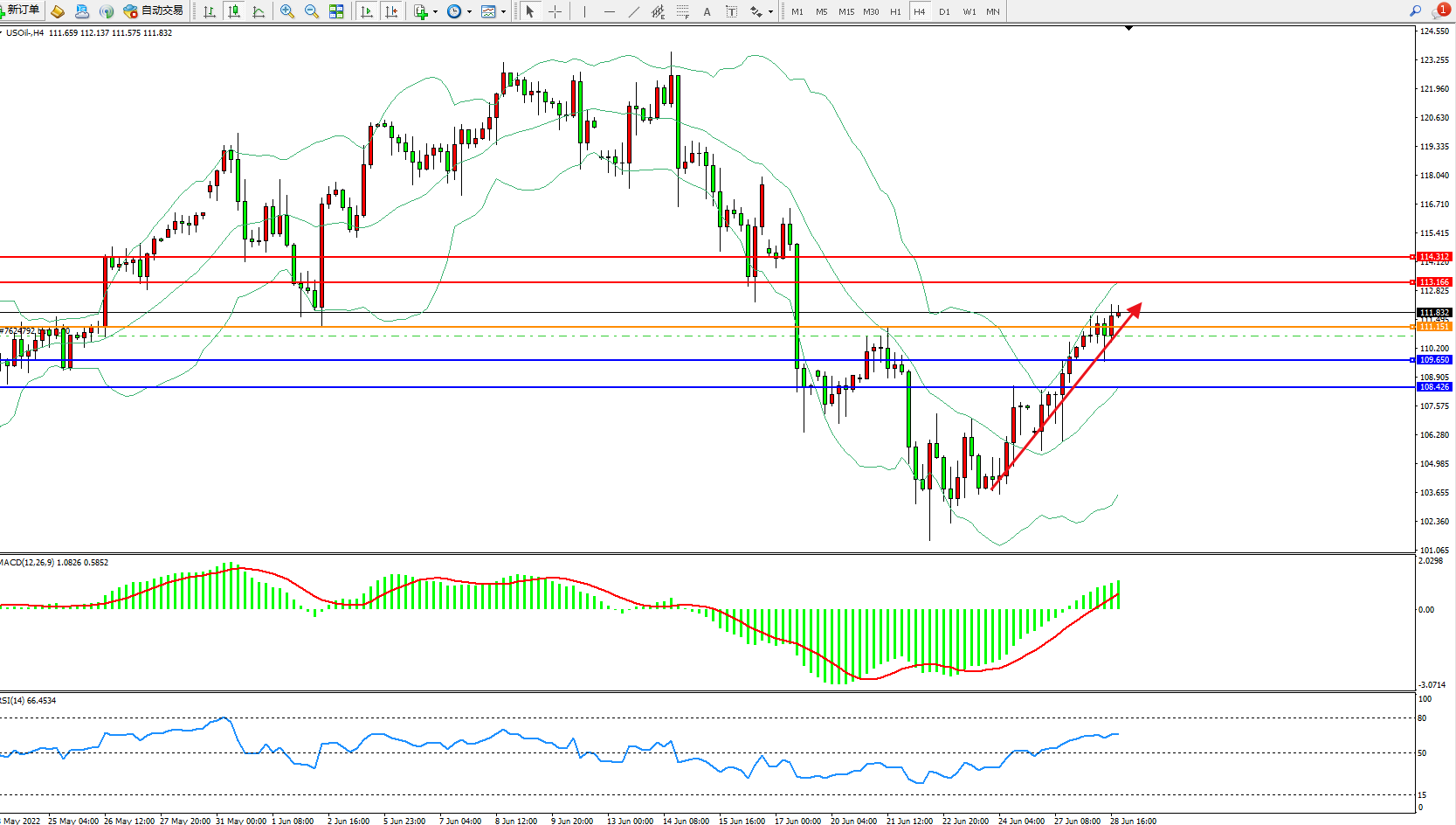 交易策略:111.151上方看涨,目标113.166、114.312