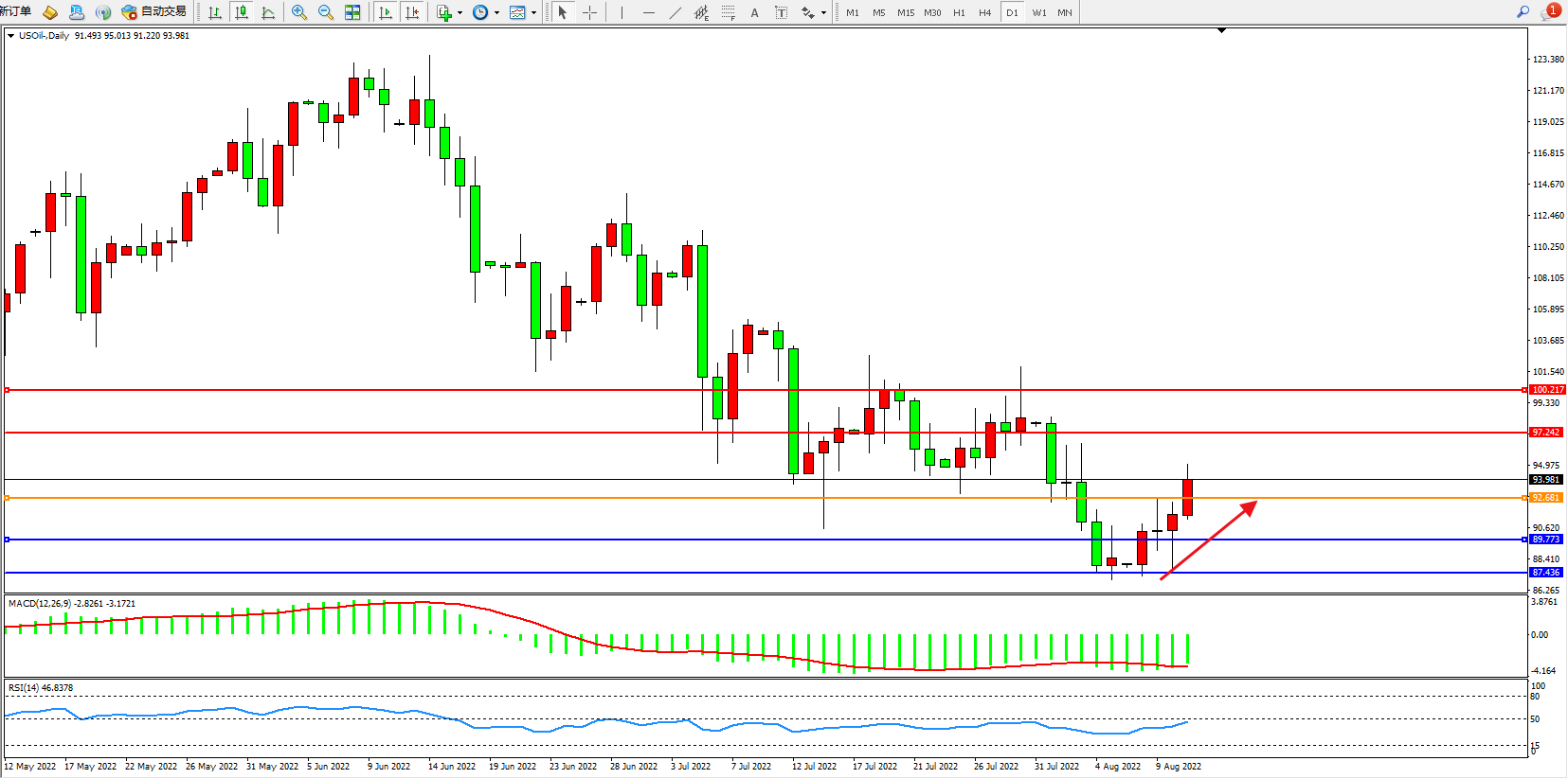 交易策略:92.681上方看涨,目标97.242、100.217