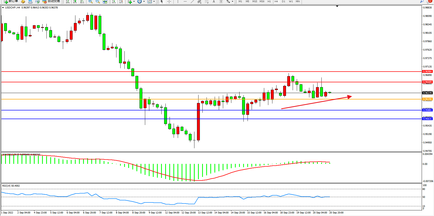 交易策略:0.96190上方看涨,目标0.96689、0.96984