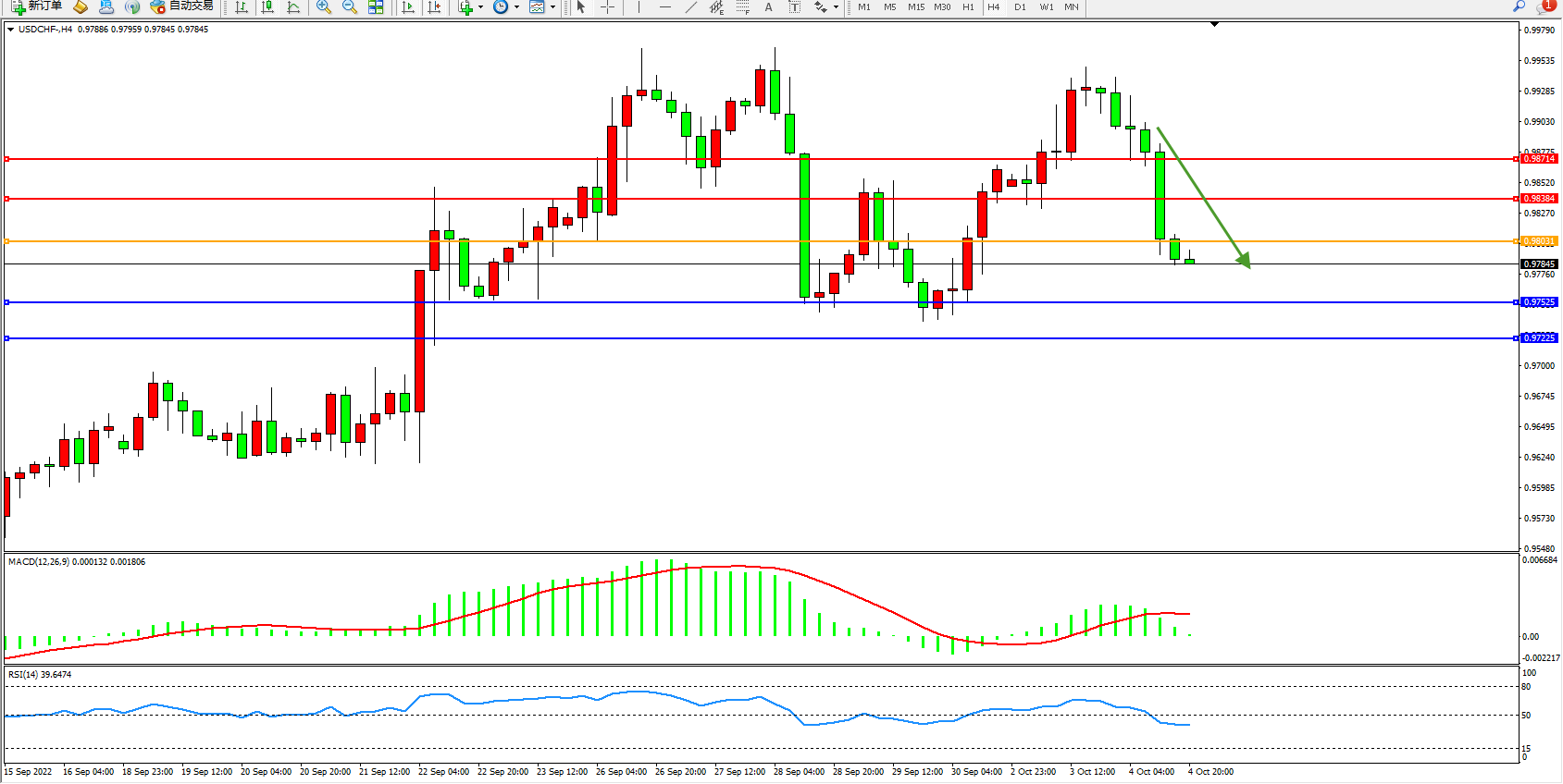 美元瑞郎USDCHF——4小时K线图显示:
