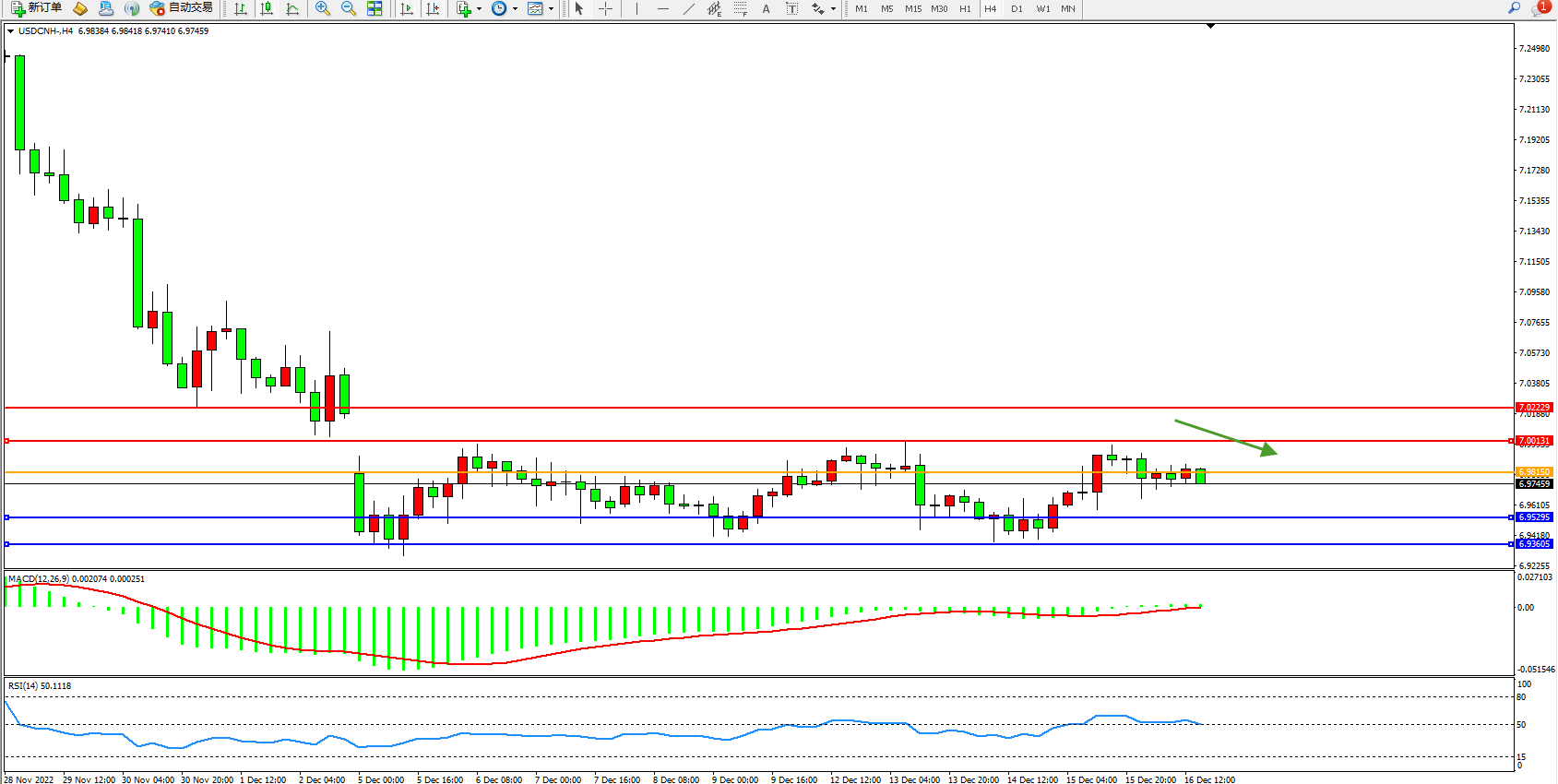 交易策略:6.98150下方看跌,目标6.95295、6.93605