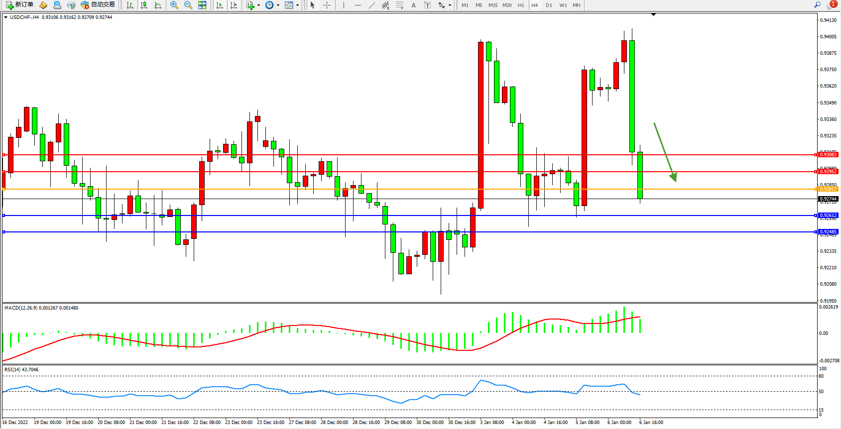 美元瑞郎USDCHF——4小时K线图显示: