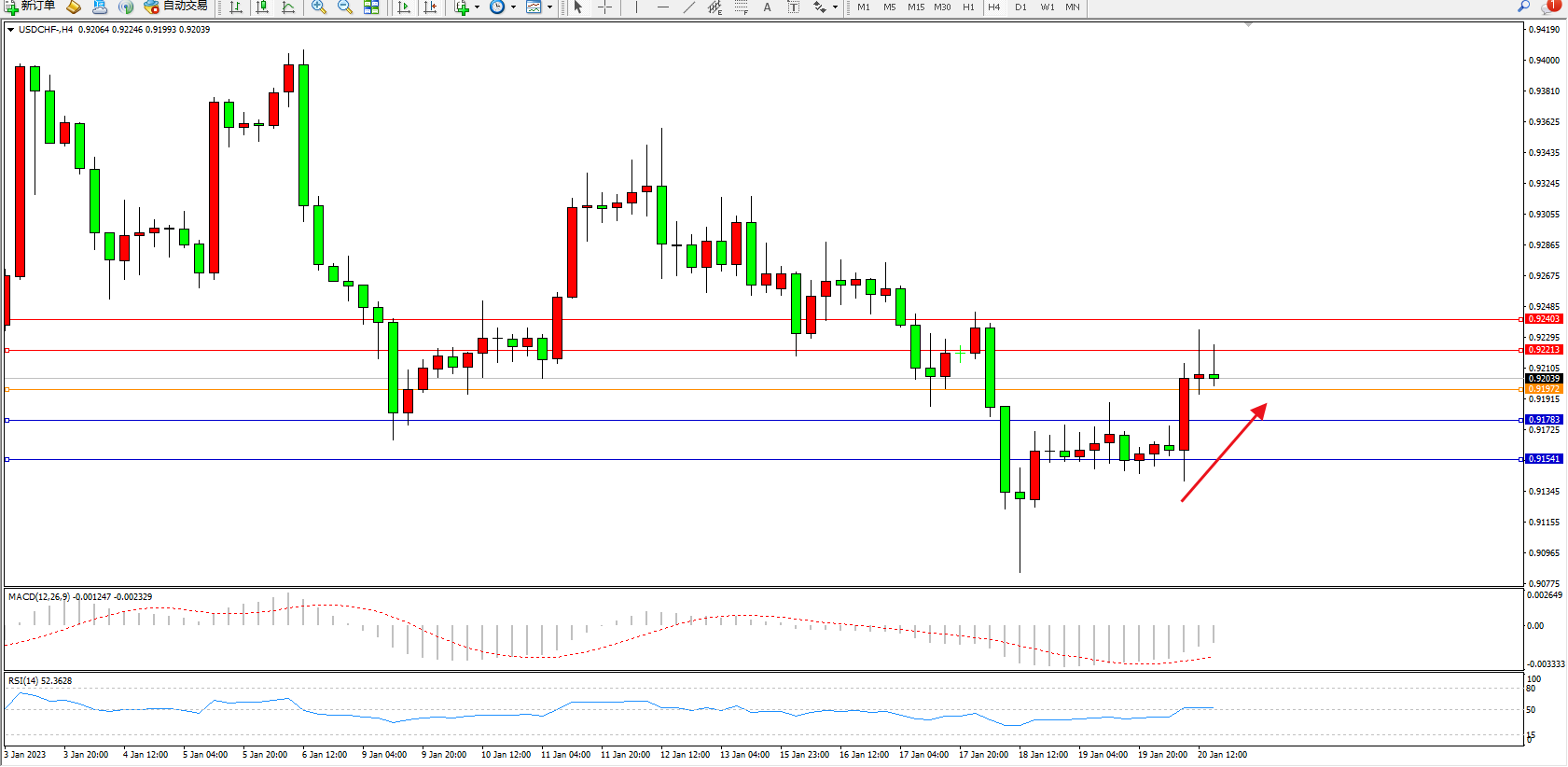 美元瑞郎USDCHF——4小时K线图显示: