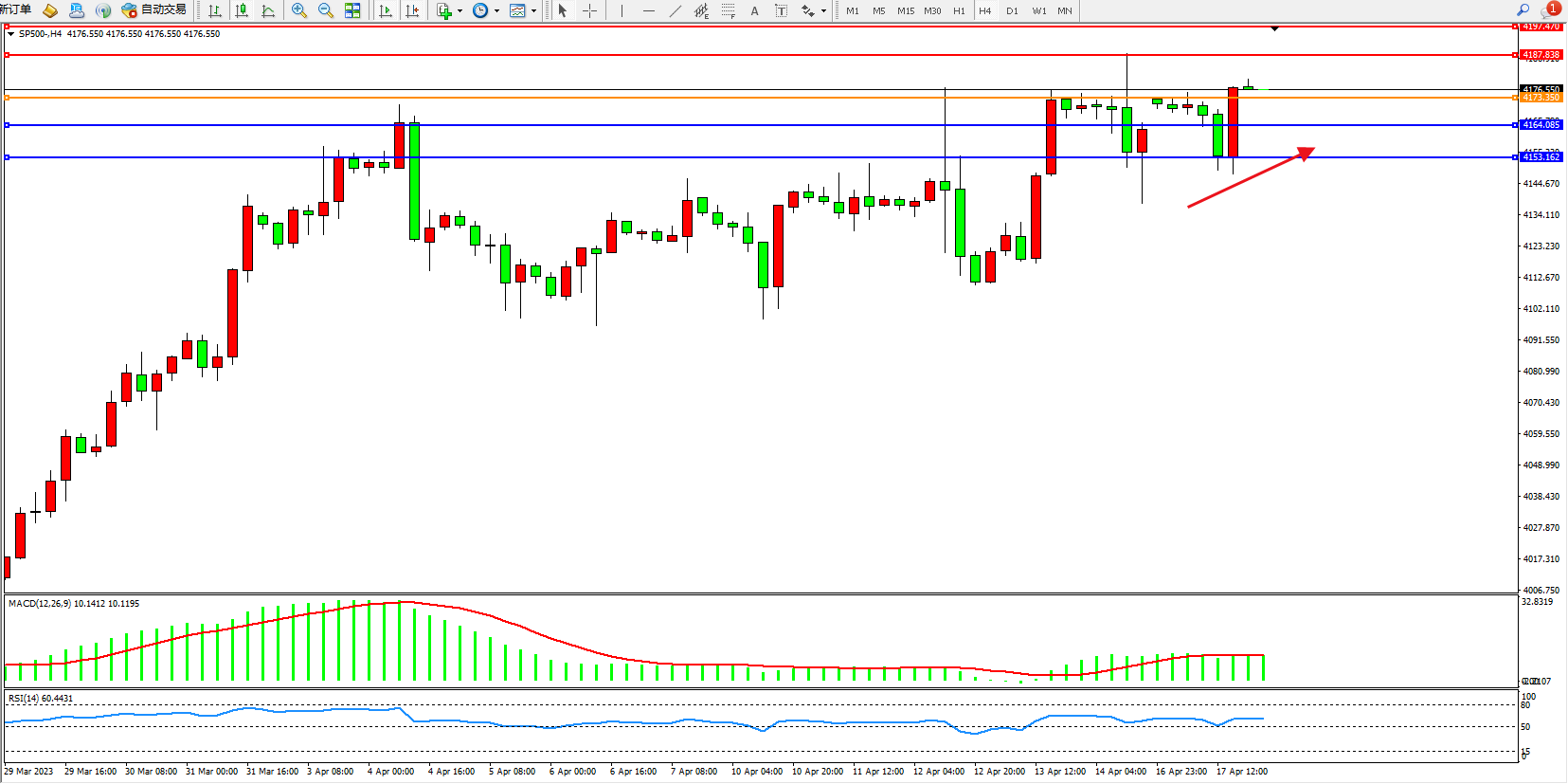 标普SP500——4小时K线图显示: