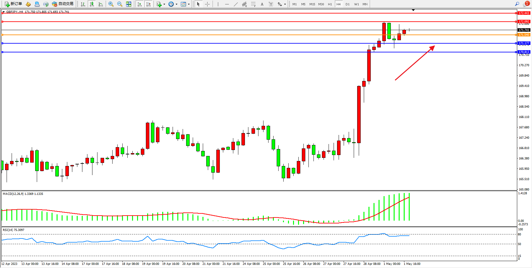 交易策略:171.540上方看涨,目标172.092 172.443