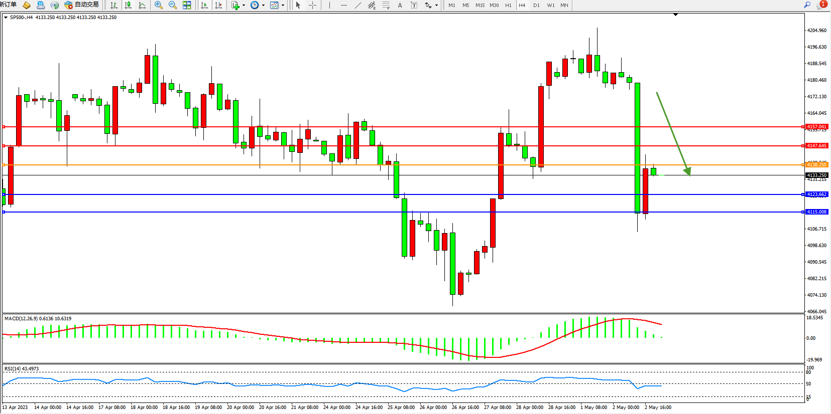 标普SP500——4小时K线图显示: