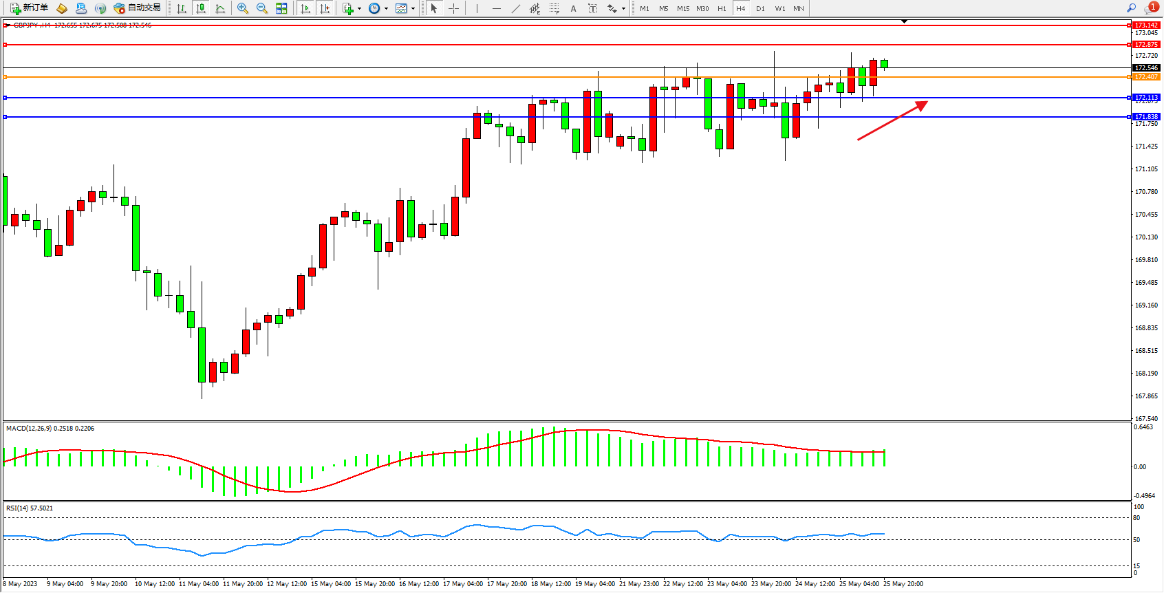 交易策略:172.407上方看涨,目标172.875 173.142