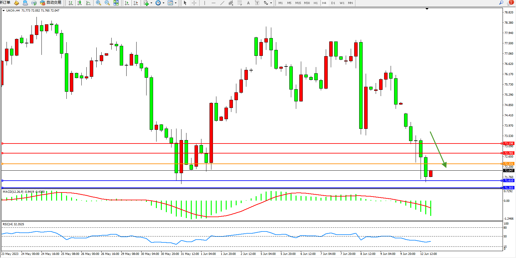 布油UKOil——4小时K线图显示: