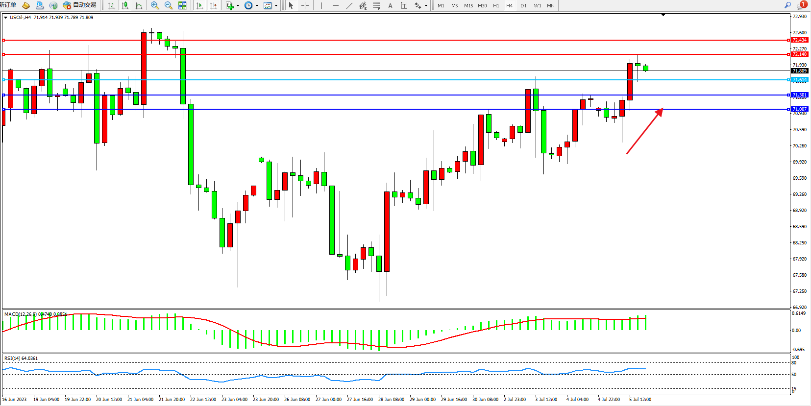 阻力位:72.140  72.434