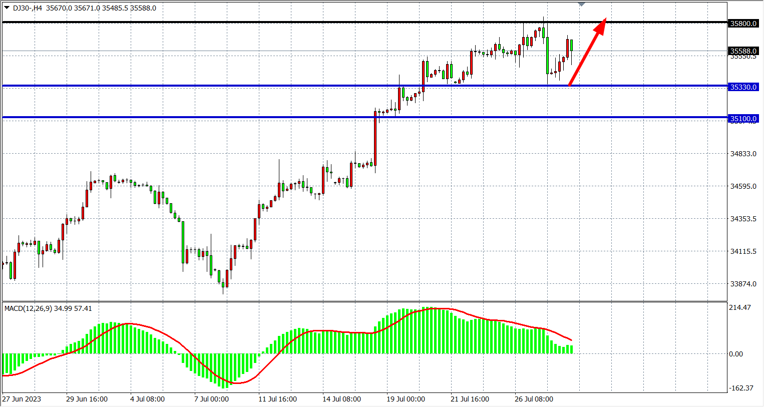 交易策略:35330 上方看涨,目标 35800 36000