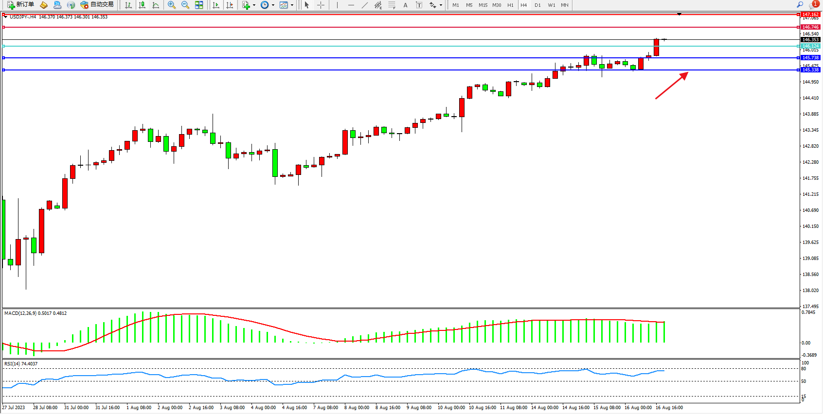 美元兑日圆维持146.353附近震荡,日本政策制定者不像去年那样大声反对捍卫走软的日元。当局在干预市场时并不以绝对汇率水平为目标。如果日本央行不出面干预,将极大可能刺激美元/日继续勇闯高峰。
