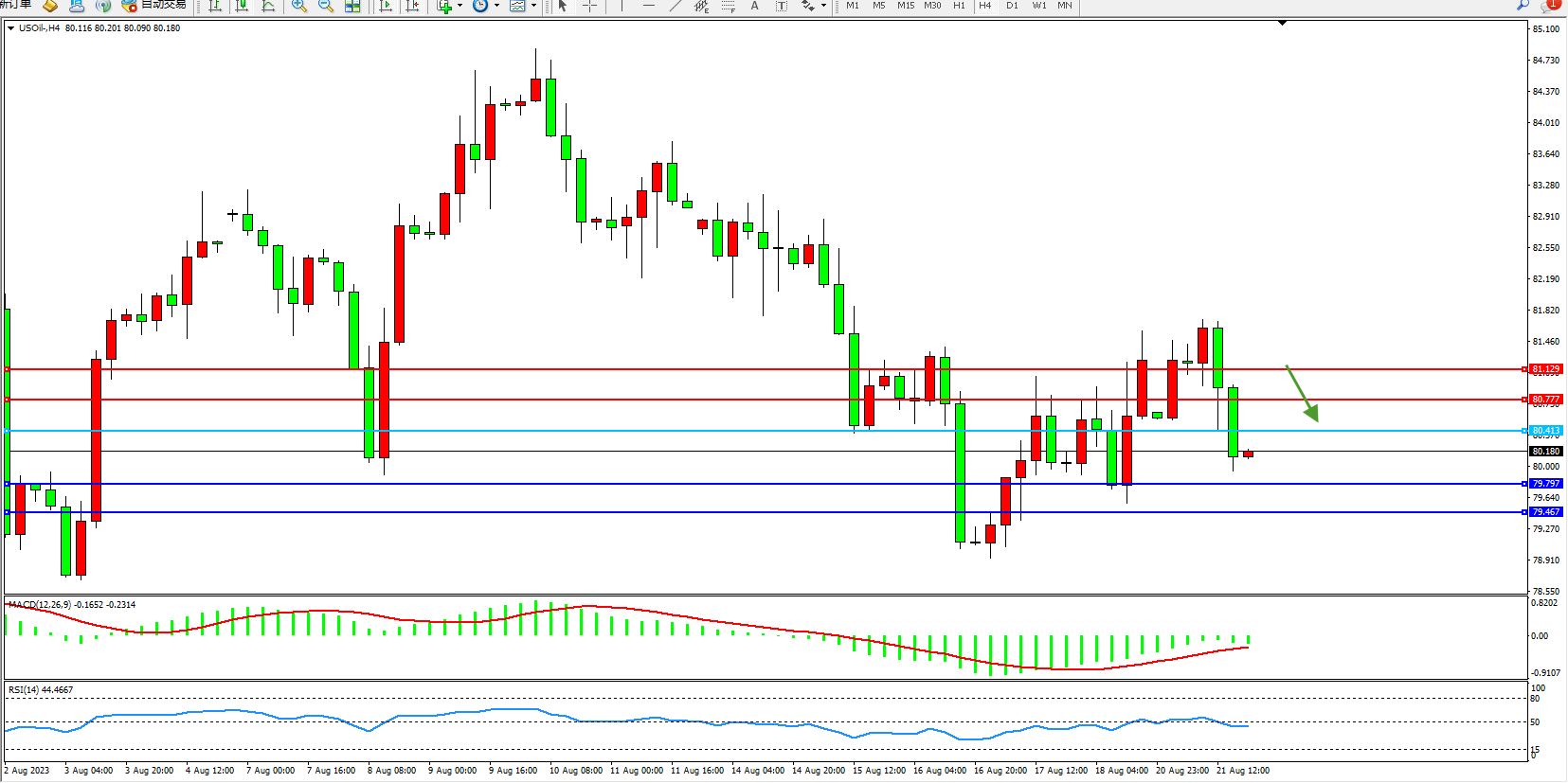 交易策略:80.413下方看跌,目标79.797  79.467
