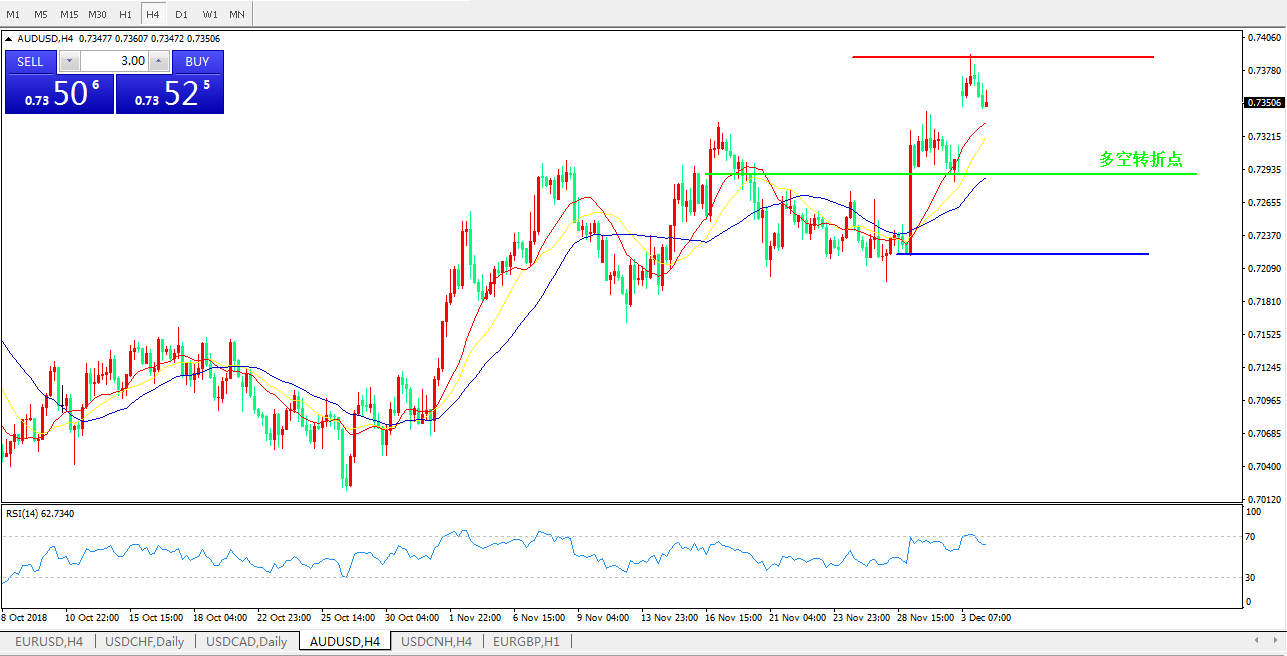 基本面简析:受G20传出的利好——中美相互停止加征新关税消息影响,市场情绪大获提振,全球几乎所有资产都翻红。重点关注午间澳洲联储利率决议