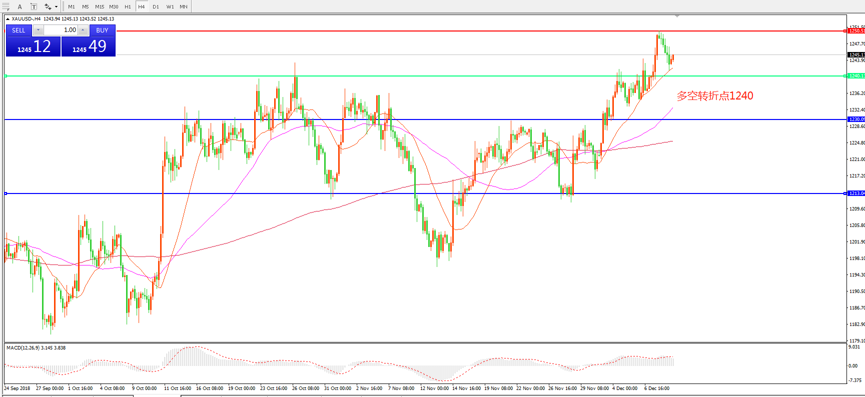 多空转折点:1240.00