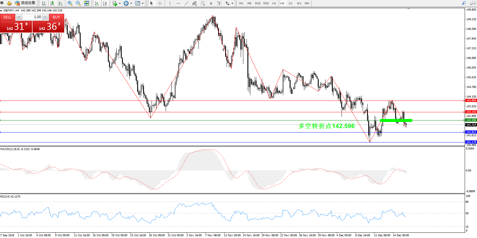 交易策略:142.596上方看涨,目标143.143、143.894