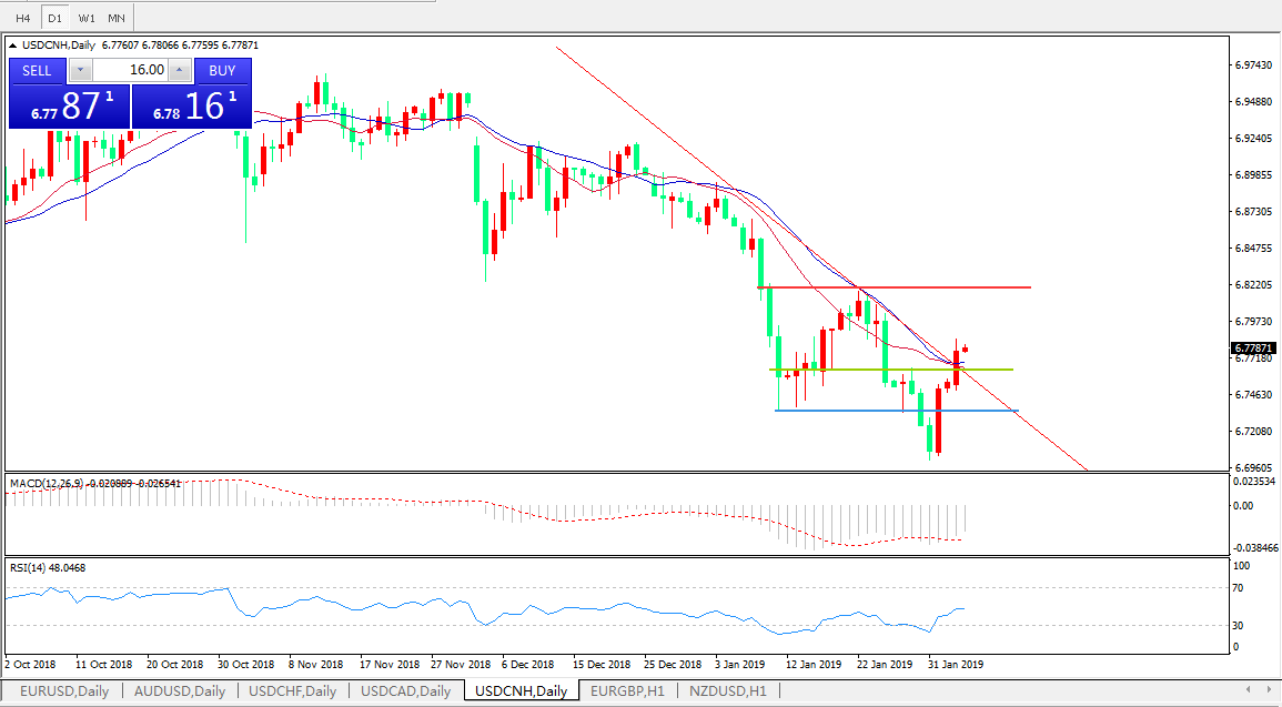 交易策略: 在6.7750之上,看涨,目标价位为6.8195,然后为6.8400。