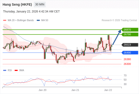 在 26490 之上,看涨,目标价位为 26790 ,然后为 26870 。