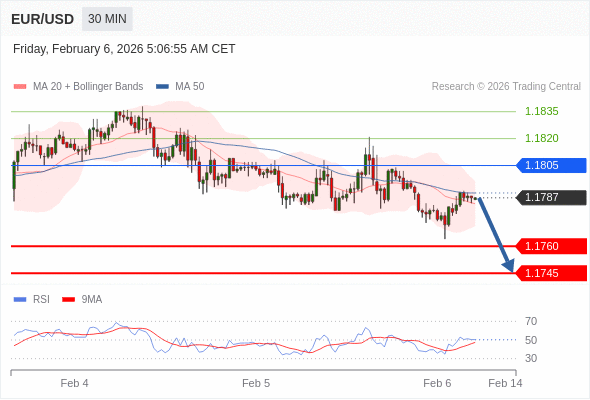 在 1.1805 之下,看跌,目标价位为 1.1760 ,然后为 1.1745 。