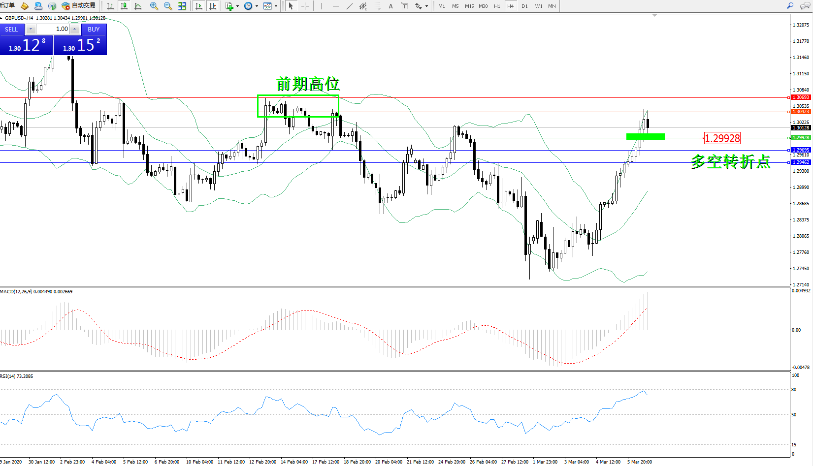 交易策略:1.29928上方看涨,目标1.30423、1.30693
