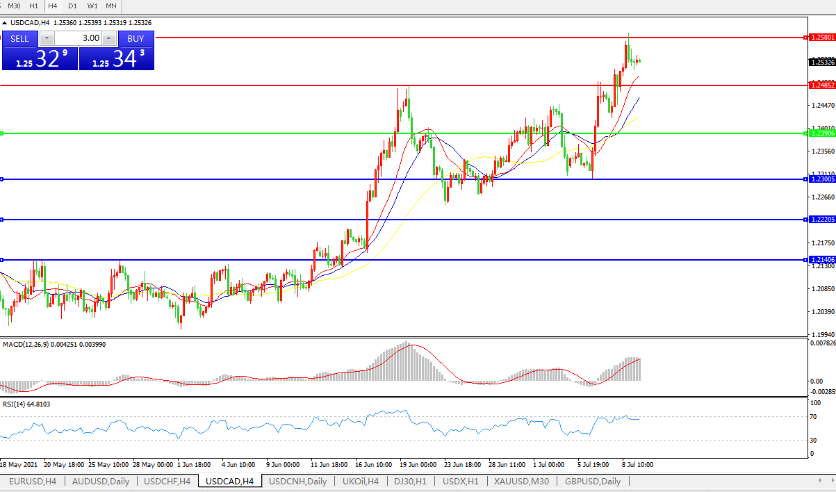 美元兑加元上涨0.42%至1.2534;盘中一度上涨0.9%,触及4月21日以来的最高点;道明证券的Mazen Issa表示,加拿大央行下周公布政策决定之前,阻力位在1.2550至1.2640区域。