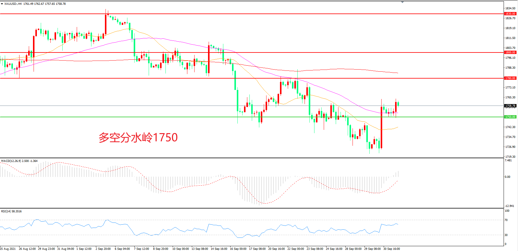 多空转折点:1750.00