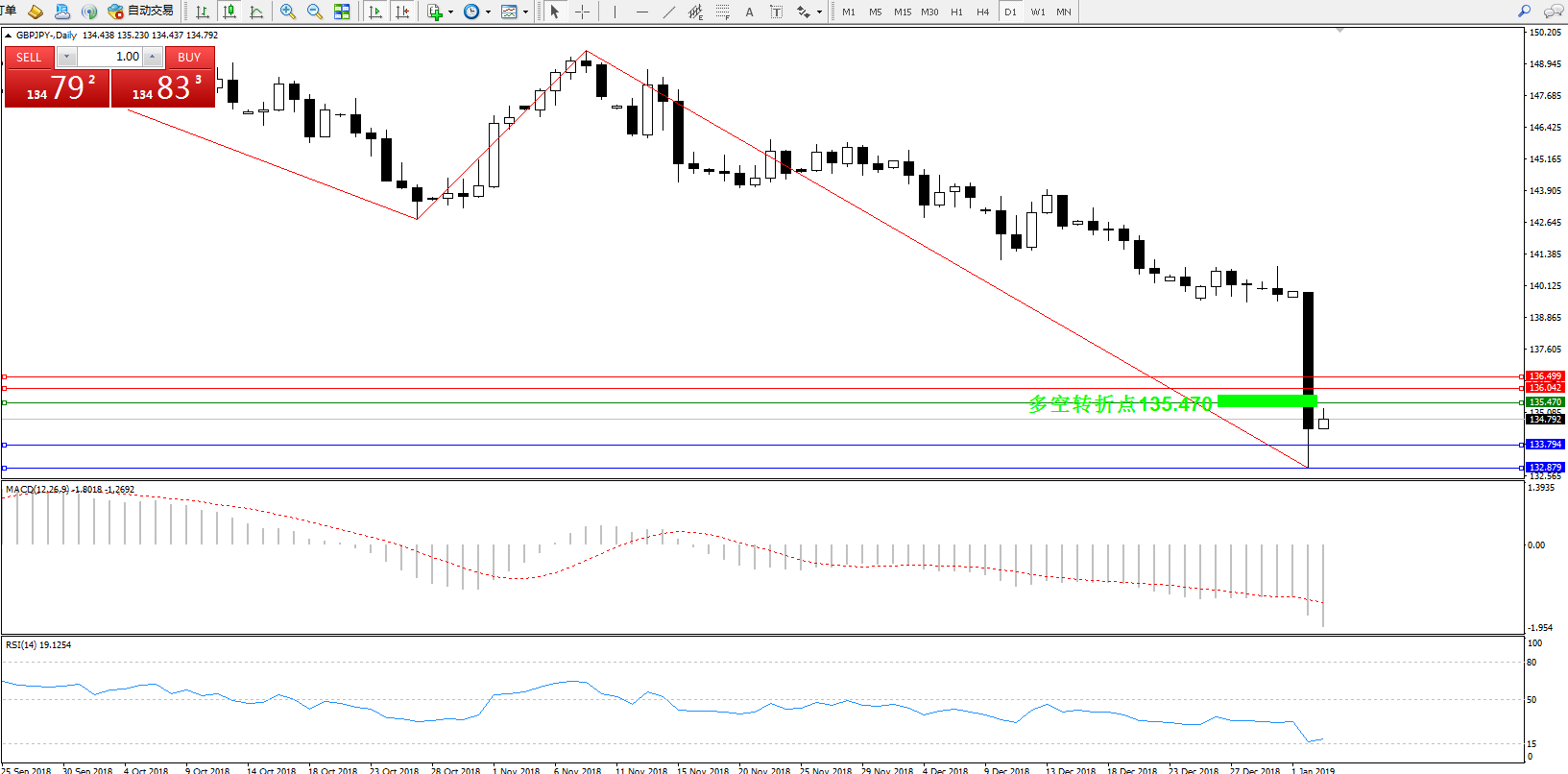 交易策略:134.791下方看跌,目标136.042、136.499